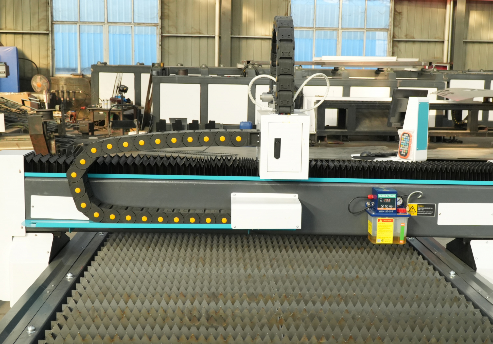 Конструкция станка рассчитана на удобную ежедневную эксплуатацию. Оборудование оснащено системой автоматического контроля высоты режущей головки, которая поддерживает стабильное расстояние между соплом и поверхностью металла в процессе резки. Это особенно важно при обработке листа с неровностями, поскольку позволяет сохранять качество реза, снижать риск столкновения головки с материалом и повышать стабильность технологического процесса.